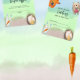 Gender neutrale baby douche uitnodigingen. Een voorbeeld van een waterverf bosbeesten: vos met bosbes in poten, beer met framboos, egel met peer, konijn met wortel. De waterverf achtergrond is veelkleurig.
