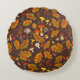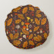 Bospaddenstoelen en herfstflora op bruin rond kussen