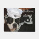 Black and white Boston shier met "Welkom aan boord" bericht, de hond draagt een zeiloroutfit. Gelieve te voelen vrij om, tekst toe te voegen te veranderen of te verwijderen als u houdt van.