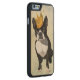 Boston Terrier en Crown Carved Wood iPhone Hoesje