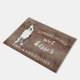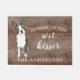 Grappig pas op voor de natte kusser" Boston Terrier Hondendeurmat gezet op een rustieke faux achtergrond. Bezoek onze winkel om een groot assortiment hondenbroden te uitzichten