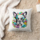 Schattigee Boston Terrier Dog omringd door roze, gele en blauwe bloemen. Ai art. Schattige cadeau voor de eigenaren van de Boston Terrier. Boston mam. Poot afdrukken.