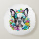 Schattigee Boston Terrier Dog omringd door roze, gele en blauwe bloemen. Ai art. Schattige cadeau voor de eigenaren van de Boston Terrier. Boston mam. Poot afdrukken.