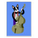 Deze jazzmuzikant Boston Terrier speelt graag zijn rechte snaarbaars. Hoe cool is deze blauwe club? Deze afbeelding van Boston Terrier is perfect voor akoestische basspelers.