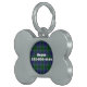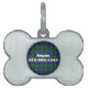 Geweldig uitziend gezelschapsID-label in botvorm. Een rond gebied, in het midden van het been, heeft een blauw en groen tartan vlakpatroon, met witte tekst. Pas de tekst aan voor uw huisdier.