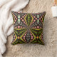 Een fractal caleidoscopisch abstract groen en bruin afbeelding zorgt voor een intrigerend, modern werpkussen.