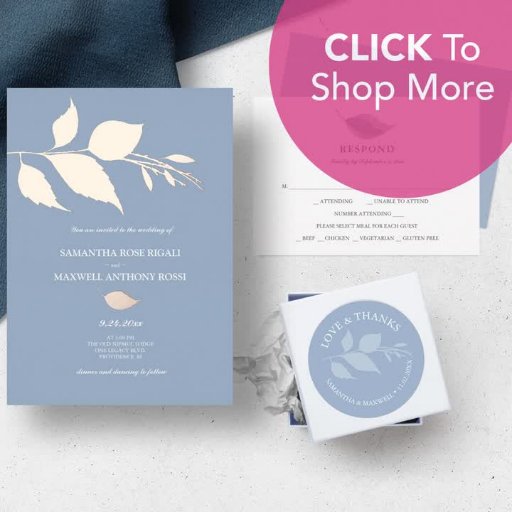 Dit moderne ontwerp is ontworpen om te coördineren met mijn Luxury Wedding Suite en heeft een takje botanische bladeren in echte gouden folie op een heldere witte achtergrond. Deze elegante kaart opent naar een stoffige blauwe kleur met ruimte om uw persoonlijke groet toe te voegen. Bezoek www.zazzle.com/dotellabelle om het volledige thema van de huwelijksbriefpapier te winkelen.