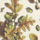 Dit ontwerp toont een herhalend patroon van botanische illustratie van bruine eikenbladeren en eikels gemaakt in een patroon op lichtbeige, crèmeachtergrond. De eikenbladeren zijn afgebeeld in verschillende tinten groen en bruin, wat de overgang van seizoenen suggereert, dus dit ontwerp zal een prachtige huisinrichting maken voor herfst- en winterfestiviteiten en feestdagen. In de cultuur is de eik een symbool van kracht, levensduur, stabiliteit en uithoudingsvermogen, terwijl de eikel staat voor vruchtbaarheid, vernieuwing en de belofte van een nieuw begin. Het is een nationale boom van vele landen: Engeland, Estland, Frankrijk, Duitsland, Letland, Litouwen, Polen, de VS. Eiken bladeren (genaamd "Badnjak" ) worden gebruikt in Servische kerstvieringen op 7 januari (Orthodoxe Kerstmis) en wordt traditioneel verbrand op kerstavond.