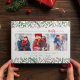 Een botanische groene en rode kerstvakantie Pine Tree gebladerte groen decoratie adreslabel. Origineel kunstwerk van Caroline Bonne Müller