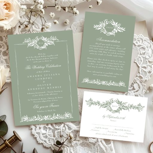 botanical sage green classic leafy frame weddingOntworpen door Phrosné Barwood