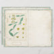 junkjournal-pagina met gele botanische afbeelding van de wildbloem aan de voorzijde en witte afbeelding van de wildbloem aan de achterzijde. Blauwgroen pagina's met de achtergrond en het perkamentagina's met gouden labels, plakband en stikkende details in het midden. Vouw de helft in om journaalpagina's te maken.