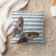 Moderne gooikussens voor de natuur enthousiast. Rendy blauwe en witte strepen aan de voor- en achterzijde, met een geverfde, kleurige vlinder "off-centered" aan de voorkant van de kussen.