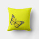 Deze kussen voorzien van één vlinder op een gele achtergrond en hebben aan beide zijden een klein ander ontwerp.