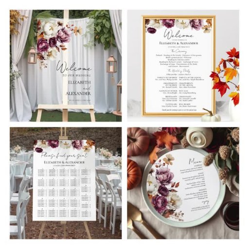 Bourgogne Floral Fall Wedding Ceremony Program Sig Poster