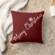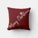 Bourgogne Red Merry Christmas Snowflakes Sierkussen. Vrolijk kerstfeest in een trendy script. De achterkant heeft witte sneeuwvlokken op een bordeauxrode achtergrond.