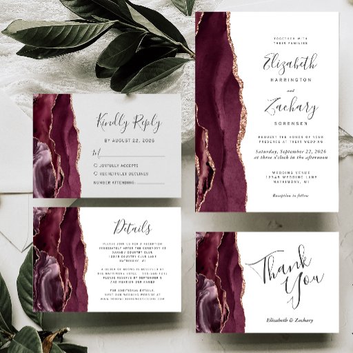 Burgundy Rose Gold Agate Script Wedding SuiteOntworpen door Akhates Designs