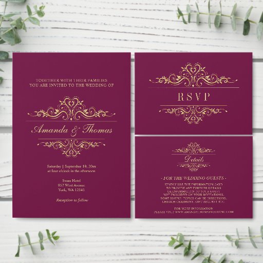 Burgundy with golden frame chic wedding Ontworpen door Brankica B