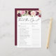 Zoek de gasten. Meng en chat met de gasten om het antwoord op hun vragen te vinden. Voeg deze leuke en speelse douche game kaart toe aan je evenement. Het beschikt over een waterverf bloemboeket van perzik, paarse en bordeauxrode bloemen met groene accenten. Personaliseer door uw vragen toe te voegen. Deze bordeaux bloemendouche giskaart is ideaal voor herfst baby showers en vrijgezellenfeesten.