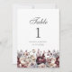 Bourgondische Boho Bloem Tafelnummer Bruiloft