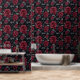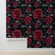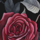 Bourgondische rozen en gebladerte met een zwarte achtergrond, naadloos bloemmotief.