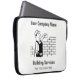 Bouwbedrijf laptop sleeve heeft een illustratie van een bouwer evenals de bedrijfsgegevens. Bouwer laptop cover. Bouwservices promotie op een gepersonaliseerde computer sleeve