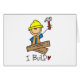 Een bouwvakker van het stokfiguurtje met bruin, hamer, en hard pet en tekst die "I Bouwt"op bouwarbeiders T-shirts, mokken, magneten, kaarten, stickers, sleutelhangers, canvas tassen, en meer leest.