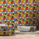 Bouwsteen blauw groen rood wit peel en stick behang