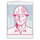 vectorafbeelding van een bouwwerktuigbouwwerker met een hardhoed met pylon en gebouwen op de achtergrond, gedaan in Retrostijl.