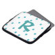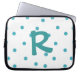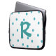 Whimsical monogram lap top sleeve gedaan in een wit, met aquamarinepolka stippen. Een grote aquamarine met één letter monogram, in het midden van het hoesje. Pas de brief voor jezelf aan of als een mooi cadeauidee.