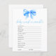 Blauwe Waterverf Bow Boy Baby shower. Eenvoudig en elegant boog thema baby shower. ANTWOORDEN: VERLANGENS, HUILEN, FLES, NACHTLICHT, SLAAP, KINDERWAGEN, EPIDURAAL, BOER, HOGE STOEL, LUIERTAS, SWADDLE