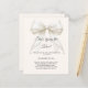 An elegant soft ivory colored background, decorated with a bow with pearls. Personalize and add a name and party details.