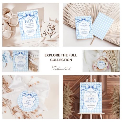 Bow Lint Blauw Gingham Baby Jongen Douche Kaart