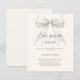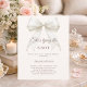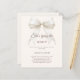 A soft ivory colored background, decorated with a bow with pearls. Personalize and add a name and party details.