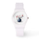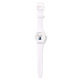 Dit horloge heeft een bowlingontwerp, met een vector afbeelding van een zwarte bowlingbal, en vier rode en witte bowlingpinnen. De achtergrondkleur kan indien gewenst worden aangepast.