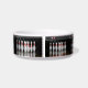 Een dierenkom met een foto van bowlingpinnen.
