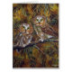 Een paar uilen delen een tak en houden waakzame ogen buiten in het bos.