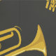 Gek behang patterend met brass band trompetten en sterren. De achtergrondkleur is een zacht grijs, maar u kunt dit zelf aanpassen en wijzigen.