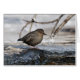 Verdroogd met een afbeelding van een stoere kleine vogel genaamd een Amerikaanse dipper (Cinclus mexicanus) die op een plank van ijs staat langs de meestal bevroren Kwartzkreek in Alaska. Voorheen bekend als Water Ouzel, zijn ze een harde vogel die zich vaak in snel stromende bergbeken begeeft waar hij op kleine vissen en insecten jaagt. Door Ted Raynor