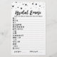 Koop dit monochrome spel en geniet van een gouden Bridal-emoji-kaart van hoge kwaliteit voor uw evenement! Raad eens het woord of de zin met emojis. Zwart-wit ontwerp. ANTWOORDEN: 1 VRIJGEZELLENFEEST, 2-BRIDE-TO-BE, 3-HONIG MOON, 4-TILL DEATH DO ONS DEEL, 5-TOSS THE BOUQUET, 6-BACHELORETTE PARTIJ, 7-RING BEARER, 8-BLOEMENMEISJE, 9-KISS VEEL FROGS OM UW PRINCE TE VINDEN, 10-LIEFT U BINNEN, 11-CHAMPAGNE TOAST, 12-SWEET HEART, 13-KISS DE BRIDE, 14-KUT DE CAKE, 15-ZULLEN JE ME MARRY?
