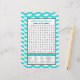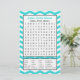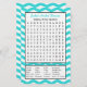 Op zoek naar een vrijgezellenfeest party game in turkooise? De blik is voorbij. Deze leuke vrijgezellenfeest partij heeft dezelfde kenmerken als turquoise blue en white zigzag chevron stripes op de achtergrond van het spel. Het spel is een zoektocht naar trouwwoorden. Je kunt de naam van de bruid bovenaan zetten om een aangepast partijspel in turkooise te creëer. Auteursrechtenhenishuispapier