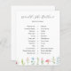 Vrijgezellenfeest gamekaart stelt vragen over de bruid. Een leuke manier om met douchegasten te communiceren.