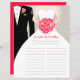 Elegante grafische groom met een tuitje en een bride met een sluier, met een poot van rood gestileerde rozen met bloemen vrijgezellenfeest. Bewerk dit leuke vrijgezellenfeest spel met je bruid- en groepsnaam. De de partijgasten van het vrijgezellenfeest worden gevraagd om zoveel woorden te creëer als zij van de naam van de bruid en groom kunnen en de woorden invullen zij in op de verstrekte lijnen creëer. Een makkelijk spel goed om te gebruiken als ijsbreker. Unieke design en grafische kunst van Sarah Trett.