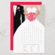 Elegante grafische groom met tuitje en bride met een sluier, met een poep rode gestileerde rozen met een vrijgezellenfeest-opzoekspel. De gasten van een vrijgezellenfeest-partij worden gevraagd om de huwelijkswoorden te vinden in deze leuke bruiloft met de jurk-benaming woordzoektocht. Een makkelijk spel dat goed te gebruiken is als cadeauspel dat een prijskaartje geeft aan de persoon die het eerst afmaakt. Unieke design- en grafische kunst van Sarah Trett voor www.mylittleedenweddings.com