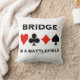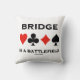 Uitzicht je het spelen van het spel van bridge als een strijd tussen verschillende geesten (dat wil zeggen, jij en je partner versus je tegenstanders)? Laat je wry bridge / duplicate bridge attitude zien met dit gooi kussen met de vier kaartpakken samen met het klassieke bridge gezegde "Bridge Is A Battlefield".