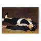 Manet Dead Matador briefkaart. Olieverf op canvas van 1864 tot 1865. Een van de meest dramatische en visueel bewegende schilderijen van Manet, Dead Matador (Mort L'Homme) schildert een jonge folterslavin af tijdens het stierenvechten. Het jonge man ligt elegant op de grond in zijn donkerblauwe matadeskostuum met zijn zwaard aan zijn kant en zijn vlag in de hand. De witte sokken, de sash en de inwendige vest vormen een opvallend contrast met het donkere kostuum van het jonge man. Dead Matador is een van de beroemdste matadoradschilderijen uit de hele tijd. Hij geeft supporters van Manet een groot cadeau, realisme, stierengevechten en Franse kunst.