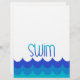 Lichtblauwe, donkerblauwe en blauwgroen golven maken een schattige grens aan dit briefpapier.