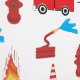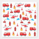 Een schattige rode brandweerwagen, met afbeelding van brandweerauto's, brandweerhelikopter, brandkraan, brandslang, brand en verkeersknopen. Een schattig ontwerp voor iedereen die van noodvoertuigen houdt, brandweermotoren, brandweerscènes, brandweerillustraties, enz.
