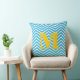 Sierkussen voor Bright Aqua en geel modern monogram Zig Zag