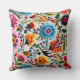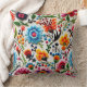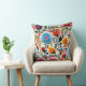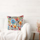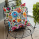 Een groot kleurrijk Sierkussen ontworpen met wilde bloemen in Sinaasappel en blauw