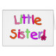 Kleine zuster T-shirts, bodypakken, kaarten, canvas tassen en andere kleine zusartikelen met heldere multicolortekst.
